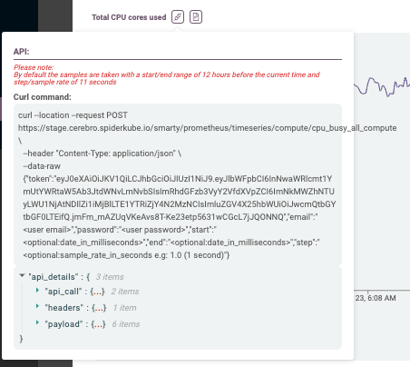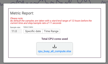 Like the API, a user can choose the sample rate and time range or specific date for metrics.