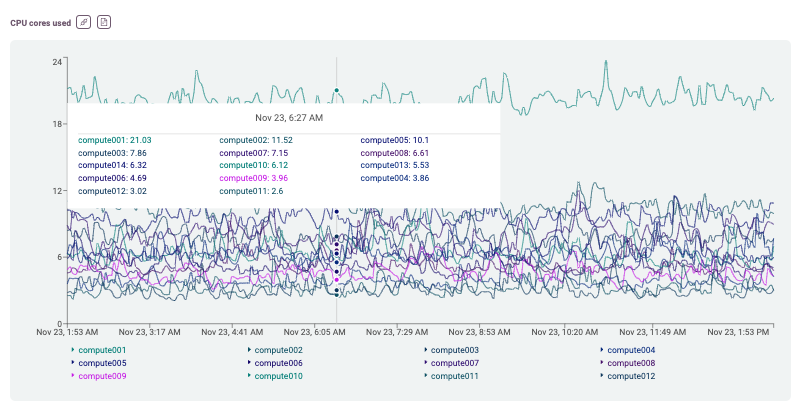 Hayei also can desegregate the metrics per server. With this option, anyone can better understand what is happening (or being used) on each compute or controller server.