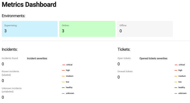 In one view, Hayei tells us how many environments are online and how many incidents are open and unread in the Data Source. It also shows the severity of the incident in a pie diagram.